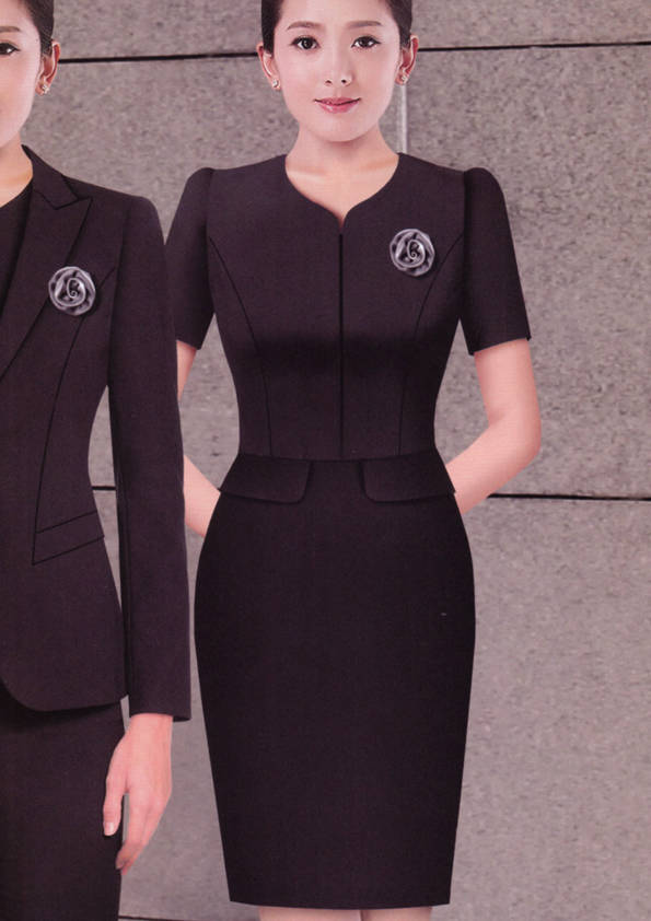 連衣裙,是指吊帶背心和裙子連在一起的服裝,是裙子中的一類。連衣裙在各種款式造型中被譽為“時尚皇后”,是變化莫測、種類最多、最受青睞的款式。一支口紅、一雙高跟鞋、一條連衣裙,女孩變成了女人。正如美國設計師DianeVon所說:要感覺像個女人,請穿連衣裙。1977年,年僅26歲的Diane設計出一條不用拉鏈的針織連衣裙WrapDress,一炮而紅,連衣裙也從此得到前所未有的關注,甚至成為1970年代的一種標志、一種文化現象,并成為國際時尚界無法復制的經典。我們這里提供定制的連衣裙是屬于時尚職業裝一類的連衣裙。